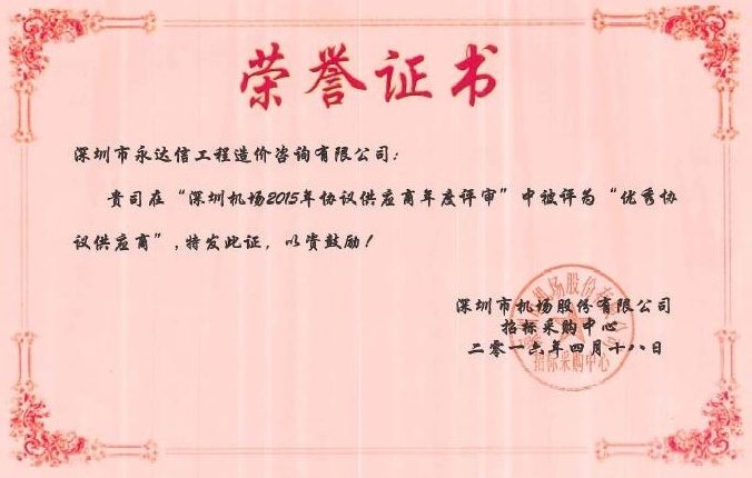 深圳机场2015年度优秀协议供应商