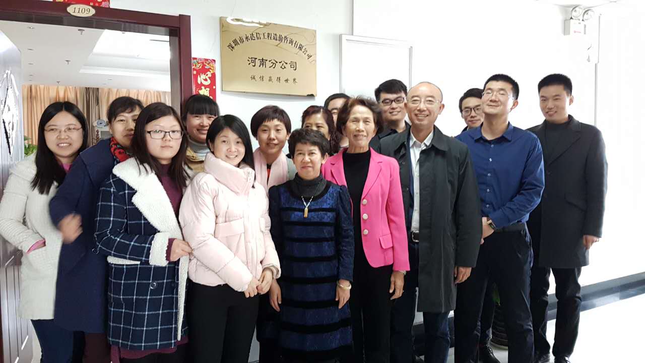 河南分公司在长基大厦1109室举行揭牌仪式。出席当天仪式的有总公司董事长潘玲曼女士、总经理赛绪志先生、总经理助理彭红女士、河南分公司负责人张先锋先生及河南分公司全体员工。