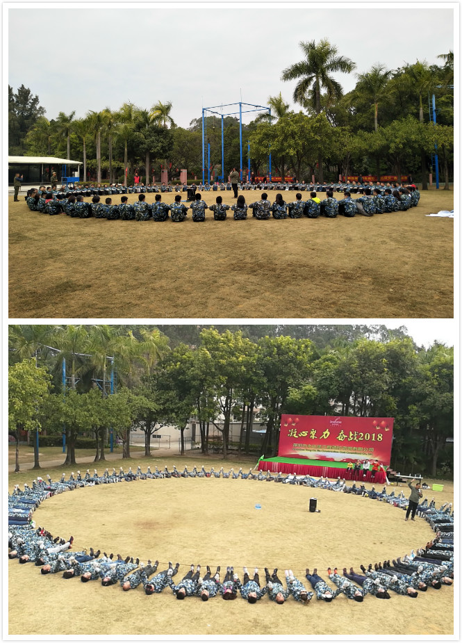记忆中应该是学生军训时期穿过迷彩服,之后就再也没有了,再穿迷彩服,有一种很振奋的感觉。教官采取了非常严格的军事化训练模式,把整个队伍分成了十支小的队伍。大家把工作、职位、荣誉等抛之脑后,今天只为自己的队伍而战。十支队伍分别集思广益,各自取了队名和口号写在各自的队旗上,在高亢的口号声和整齐的步伐声中,大家呈现出异常积极向上的精神面貌。