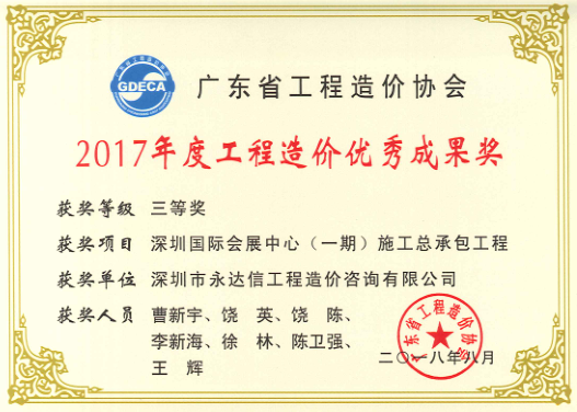 我司在广东省工程造价协会关于开展2017年度广东省工程造价优秀成果奖评选活动中荣获优秀成果三等奖。