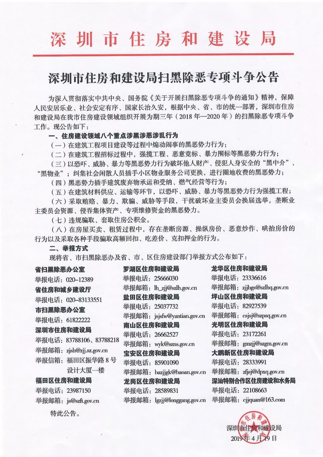 深圳市住房和建设局扫黑除恶专项斗争公告