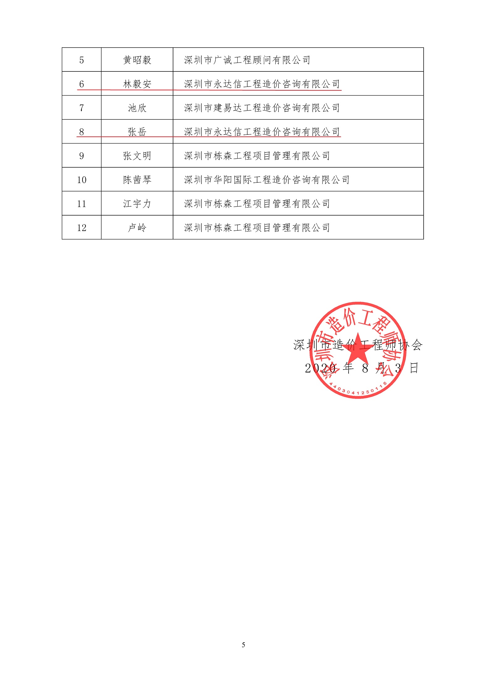 3、王文武、林毅安、张岳荣获深圳市造价咨询行业2019年度优秀个人会员;