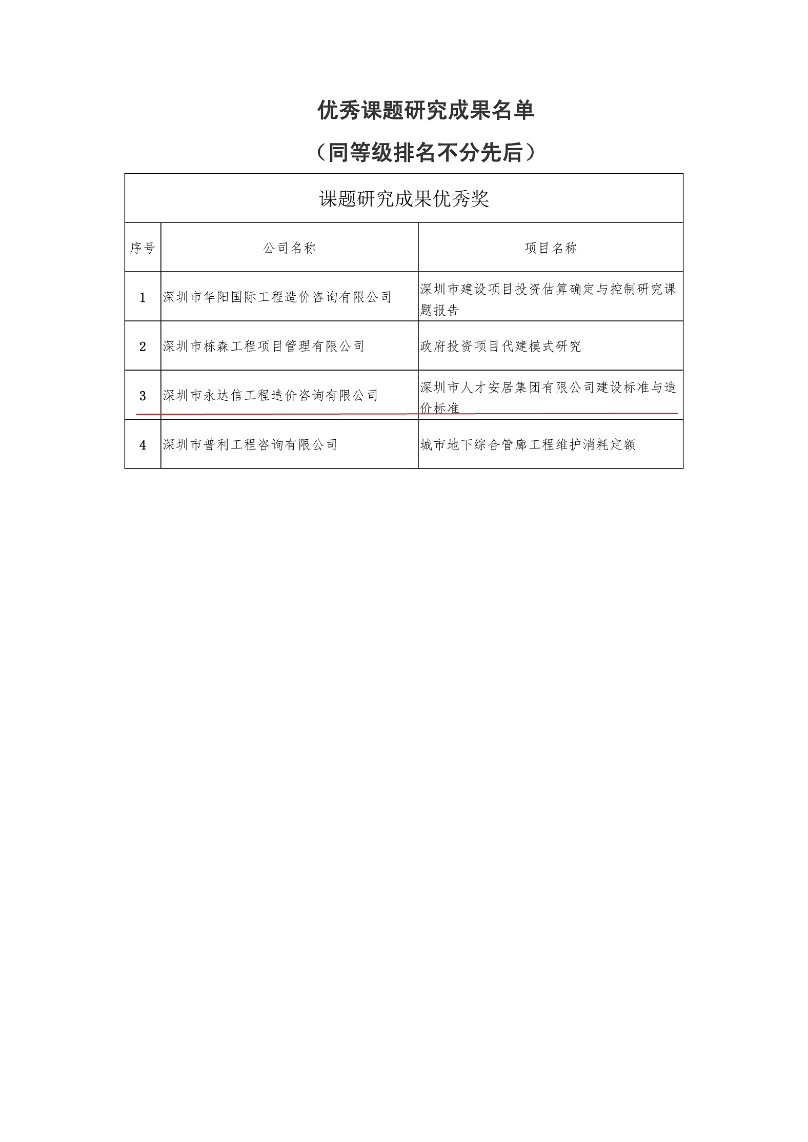 5、“深圳市人才安居集团有限公司建设标准与造价标准”项目荣获深圳市造价咨询行业2019年度课题研究成果优秀奖;