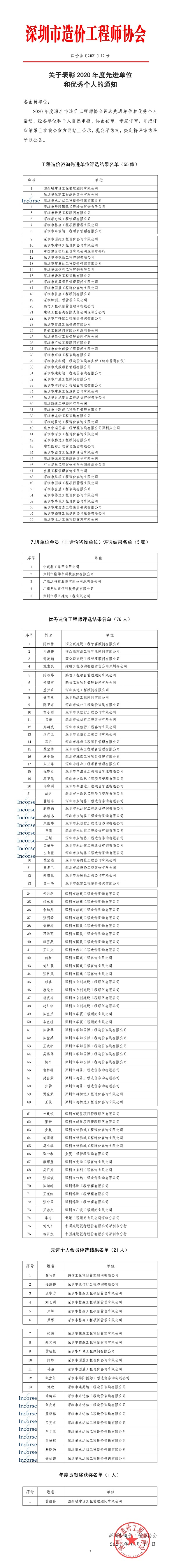 曹新宇、赛绪志、宋国玮、欧德福、王刚、王域、左有望、吴福平荣获深圳市造价咨询行业2020年度优秀造价工程师;