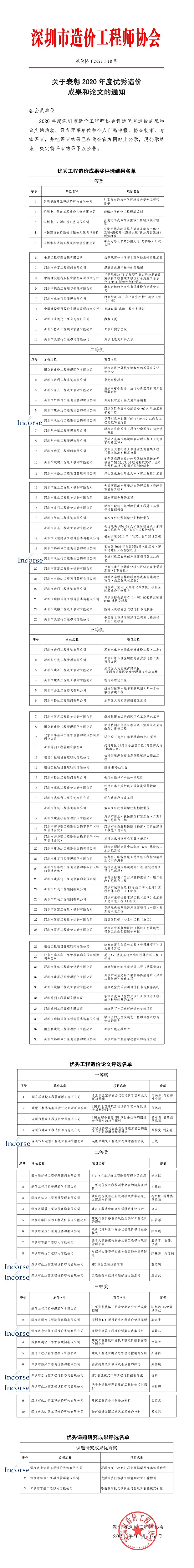 “深圳市高(次高)压定额编制及成本体系研究”项目荣获深圳市造价咨询行业2020年度课题研究成果优秀奖;