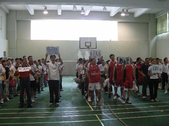 首先“大天华”董事长潘玲曼女士致辞“还有11个小时奥运会就要在北京开幕了,举国上下无不期盼着这一盛事的来临。为了进一步唱响“全民健身与奥运同行”这一主题,用行动表达出我们参与奥运、奉献奥运支持奥运、传承奥运的心声,丰富员工的文化生活,增进员工之间的团结和友谊,弘扬奥林匹克精神,深圳“大天华”举办“2008迎奥运健身运动会”,希望员工于在竞技体育运动中增加乐趣,在欢乐中增进友谊”。总经理曹新宇对运动员做了赛前动员,并指挥运动员进场,运动员举着“祥云队”、“野狼队”、“火箭队”、“亮剑队”、“迎奥队”、“和谐队”、“齐天队”等队牌喊着各队响亮的口号,迈着矫健的步伐步入会场,最后随着工会主席王域宣布运动会正式开始,运动场顿时活跃起来。