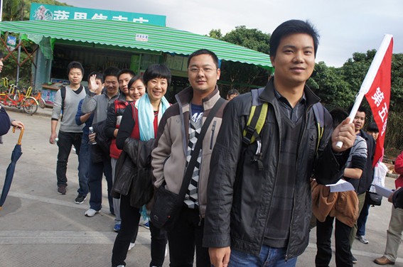 永达信工程造价咨询有限公司在广东省境内的近100名员工早已聚集在横岗镇园山脚下,准备向山顶进发。