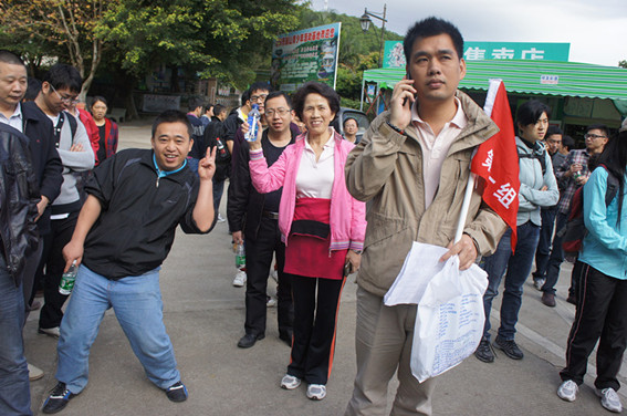 整队之后,登山总顾问潘玲曼董事长作简单动员,登山副总顾问曹新宇董事作队伍检查,登山总指挥王域监事宣读登山比赛规则后,员工6支比赛队伍象奔腾的潮水,向山上攀登。