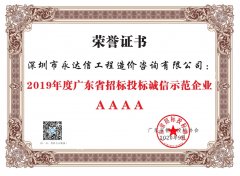 查看详情诚信是企业立足之本,一直以来,公司坚持信守合同,优质服务,诚信经营,得到业主及相关单位的一致肯定。近期,在2019年度广东省招标投标诚信示范企业创建活动,我司被评为···