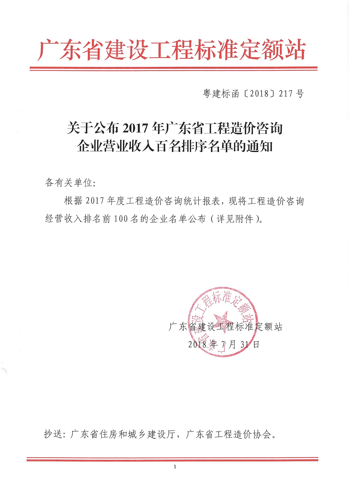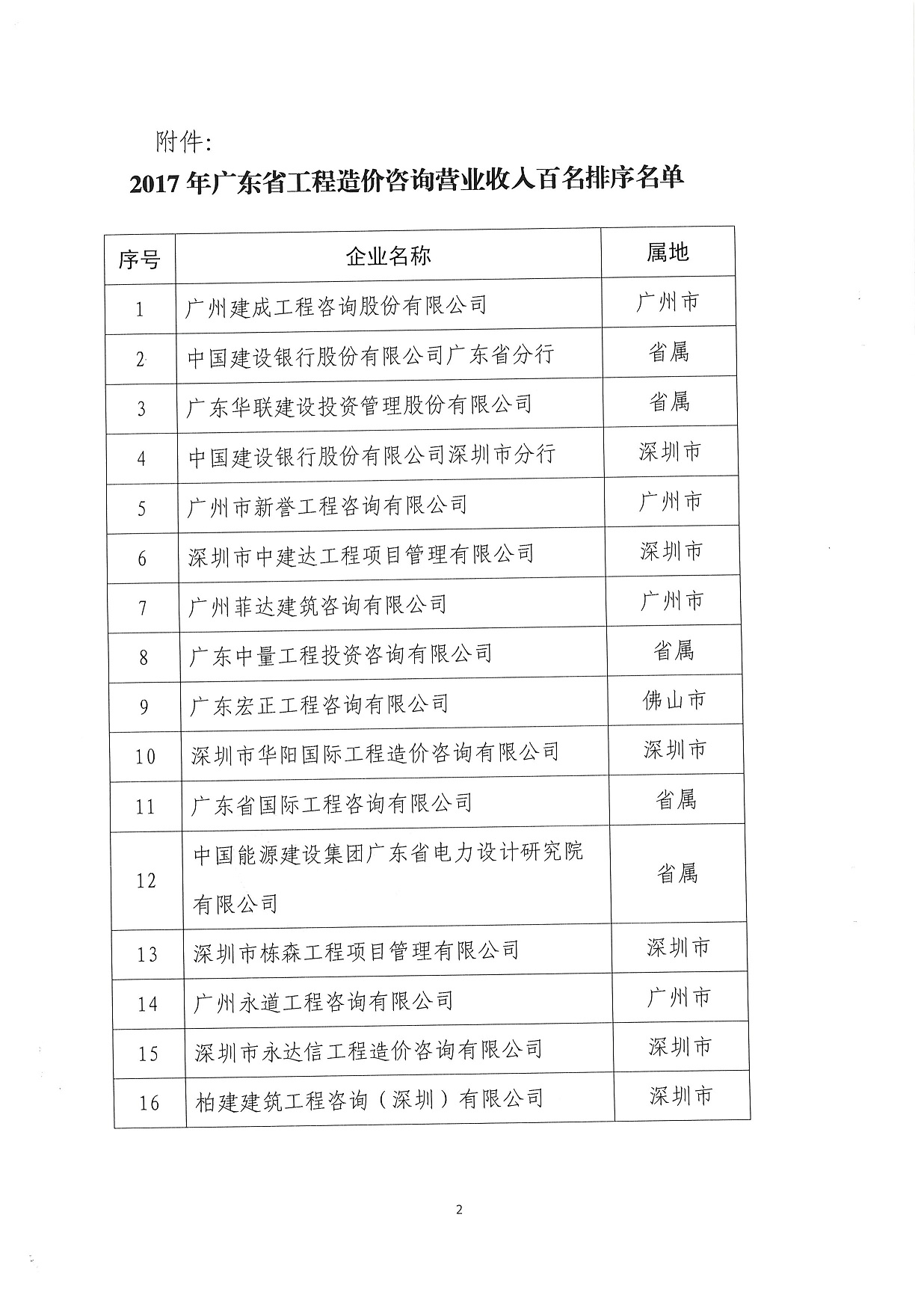 关于公布2017年广东省工程造价咨询企业营业收入百名排序名单的通知[转发]
