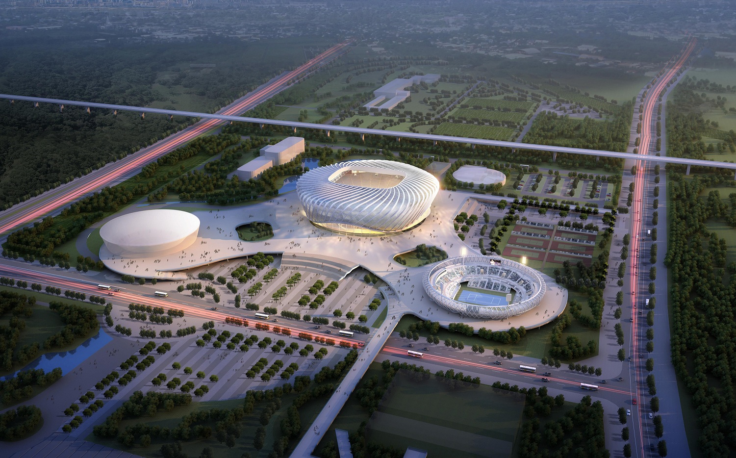 项目位于武汉东湖新技术开发区武黄高速以北、佛祖岭一路以西,规划净用地面积约为13.6万平方米,由一座5层的15000座席中央场馆、一座3层的5000座席场馆、一座2层的VIP服务楼、一座综合配套楼、4片室内备用场、4片室外标准硬质网球场、16片室外训练场以及东广场、西广场组成。结构型式为框架结构,基础为桩基基础,外围网格为双向斜交的菱形空间曲面大网格钢结构,建筑面积约为7万平方米,投资额约100000万元。